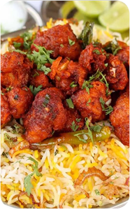Ingredients: fusion of spicy, crispy Chicken 65 and fragrant basmati rice